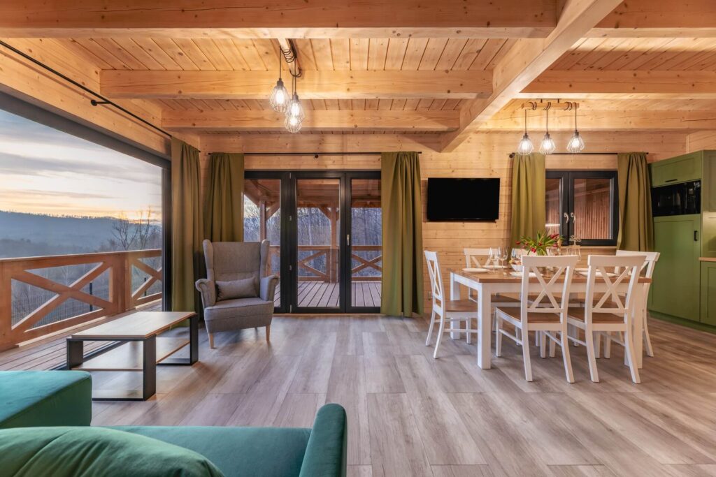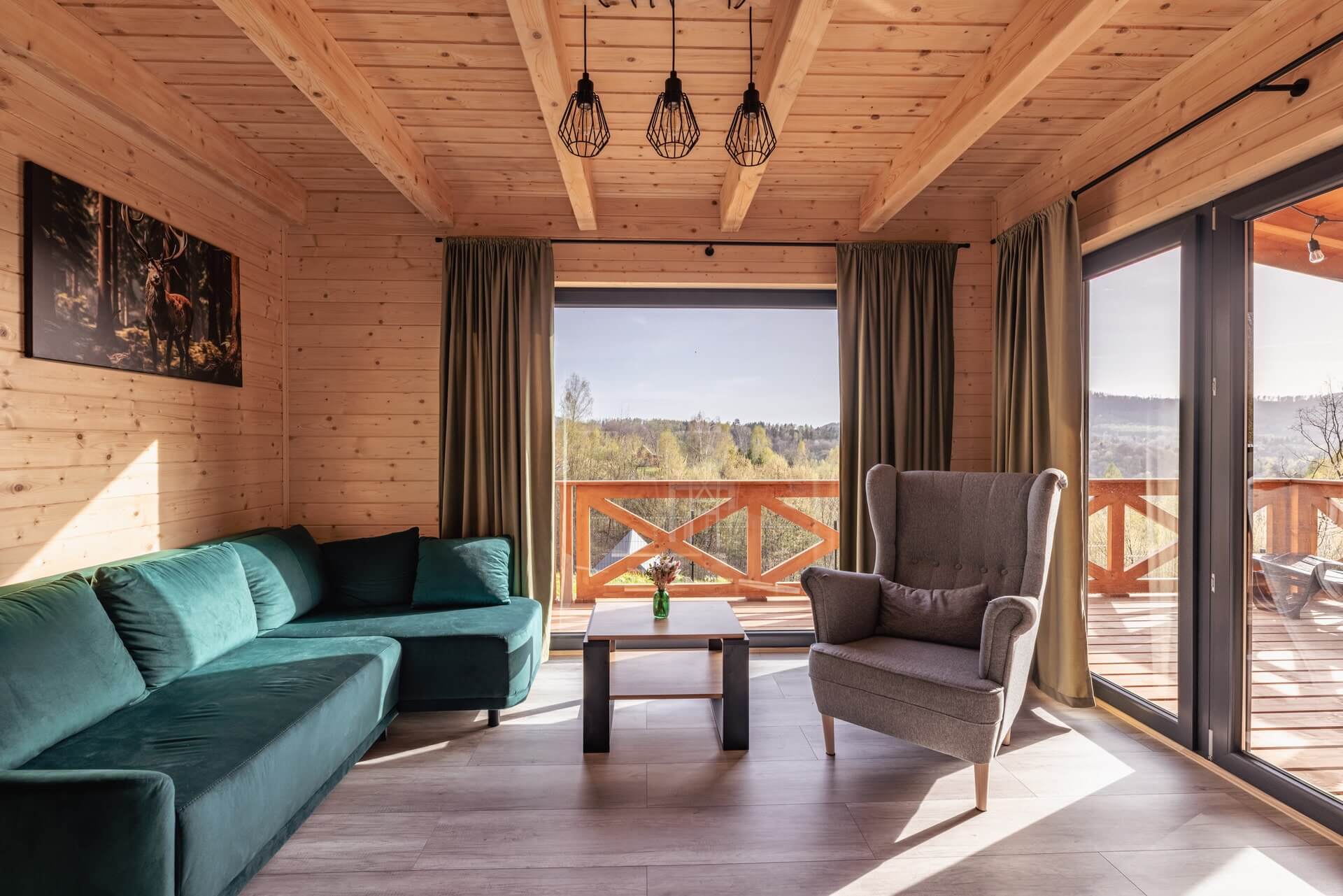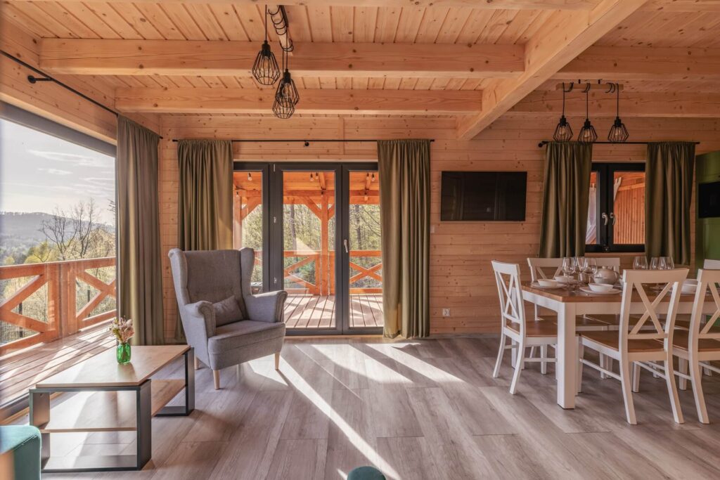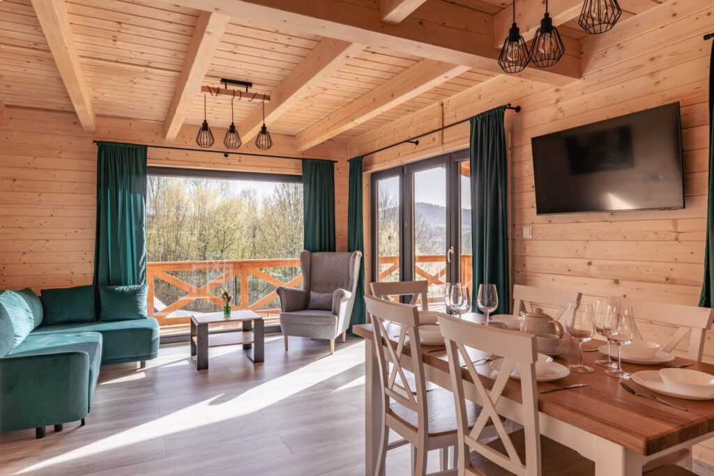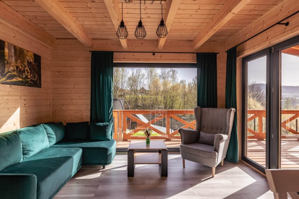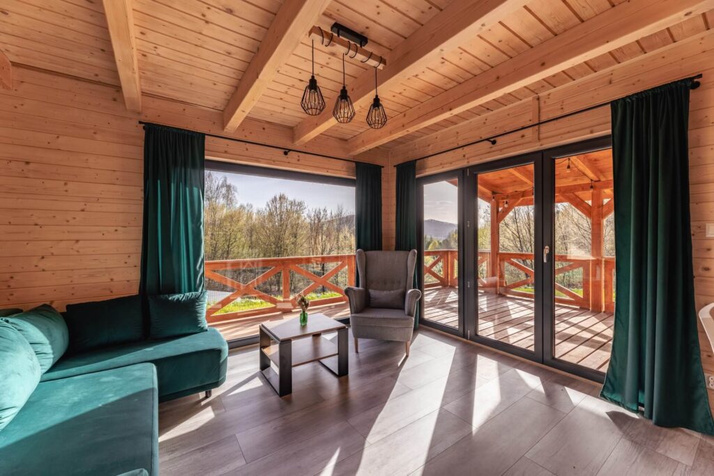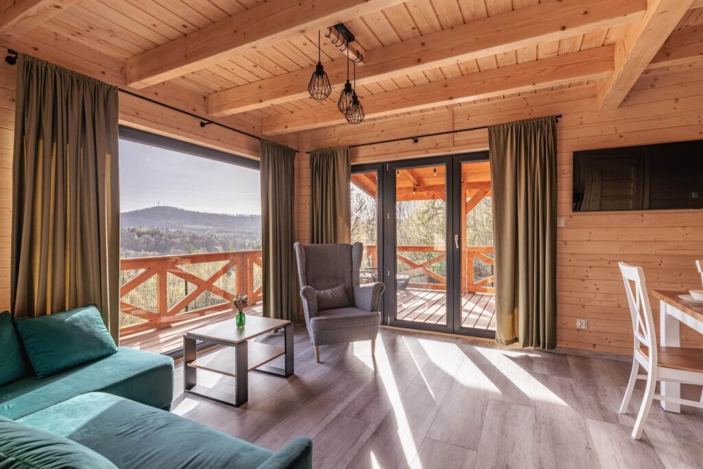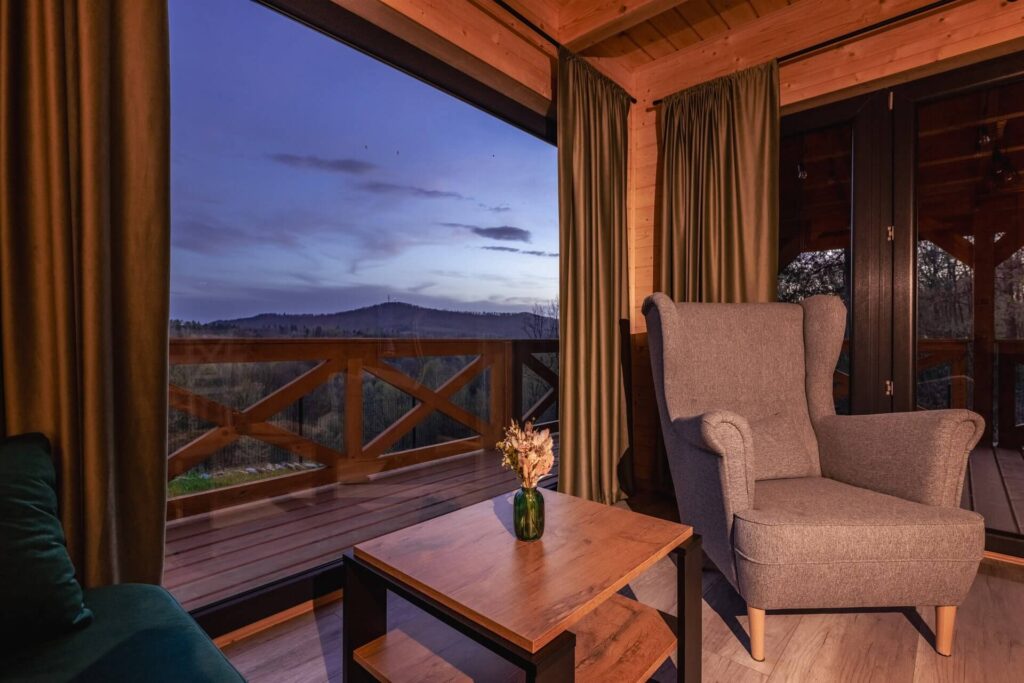Domek 2 - widok na las oraz góry, położony pośrodku.