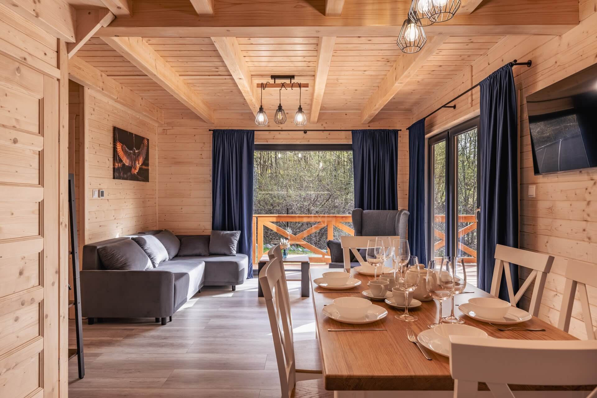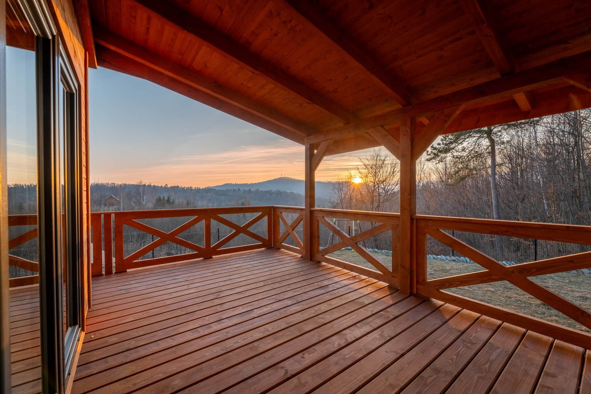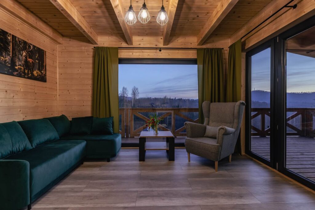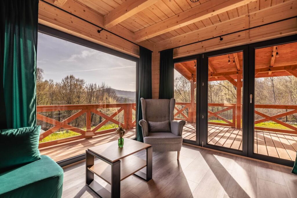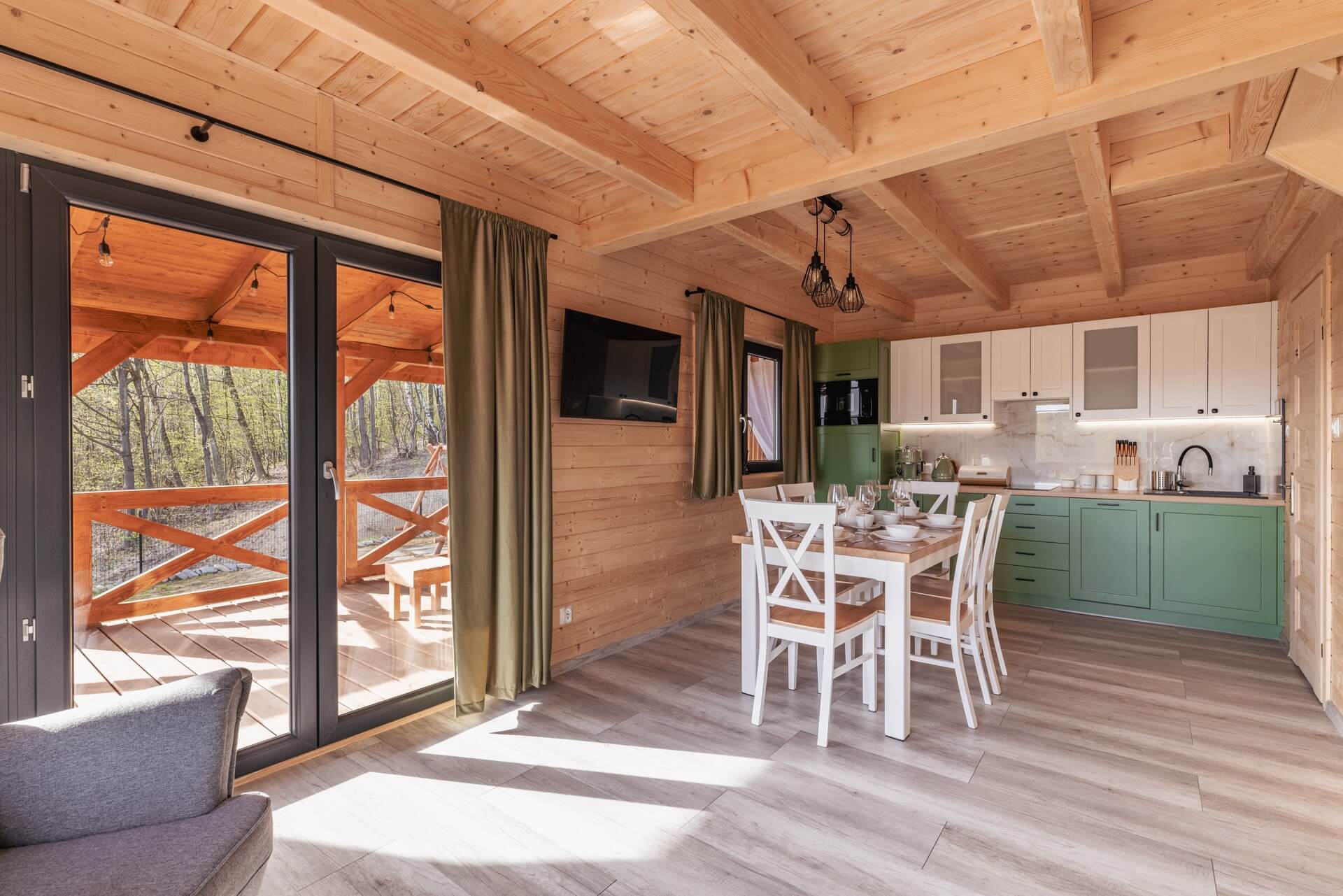 Domek 2 - widok na las oraz góry, położony pośrodku.
