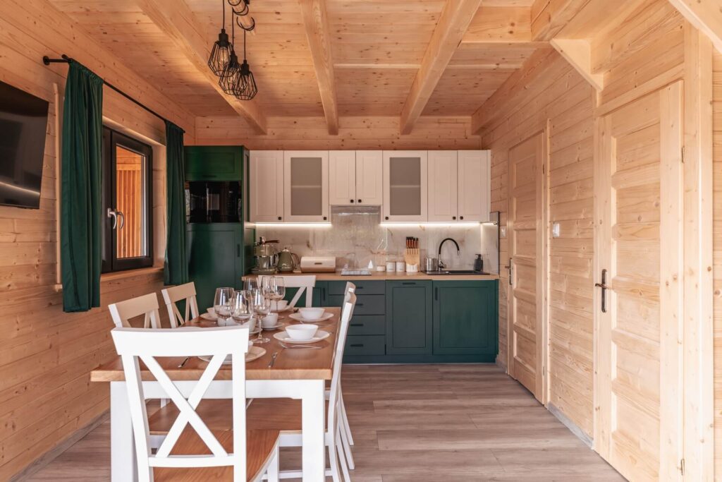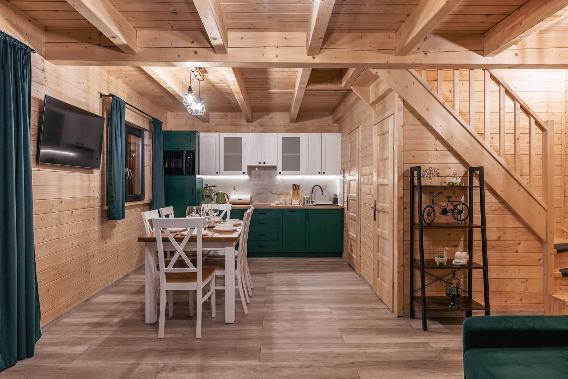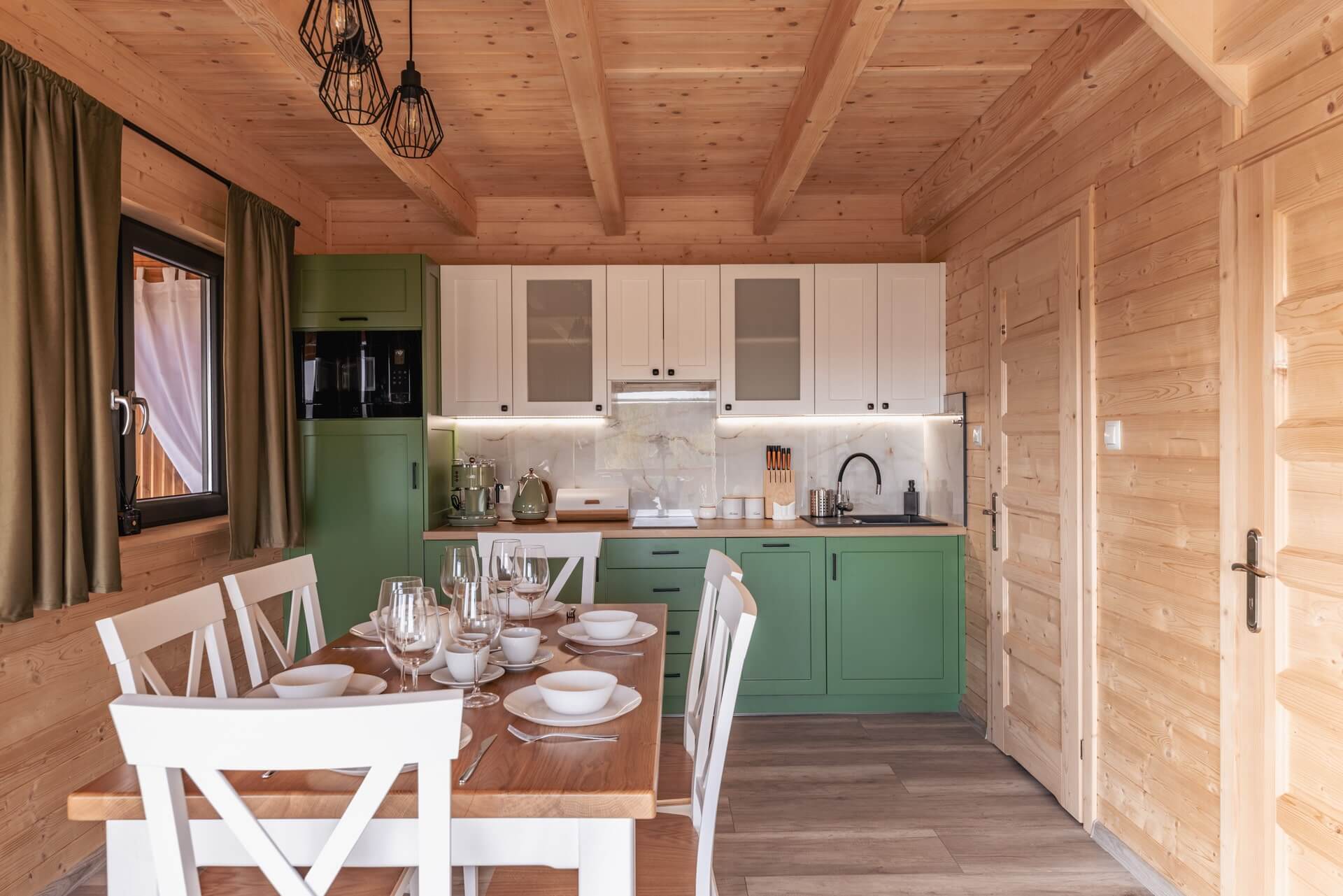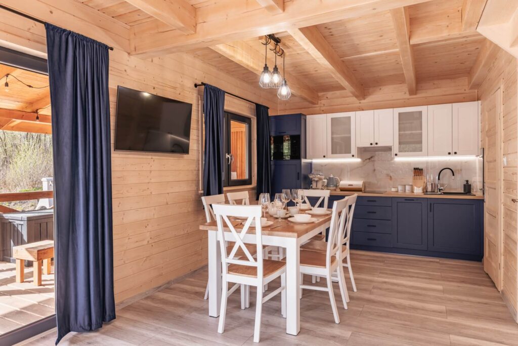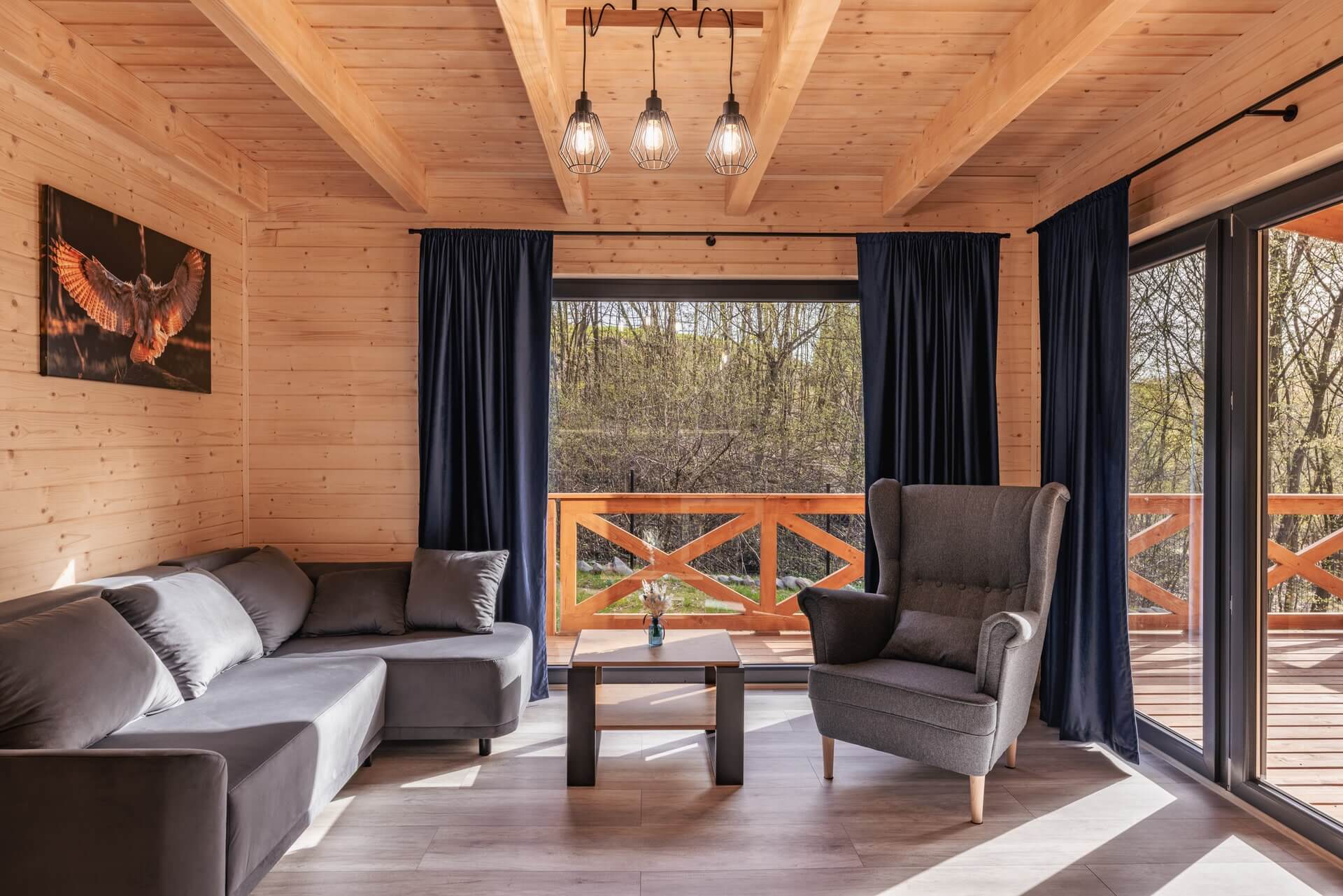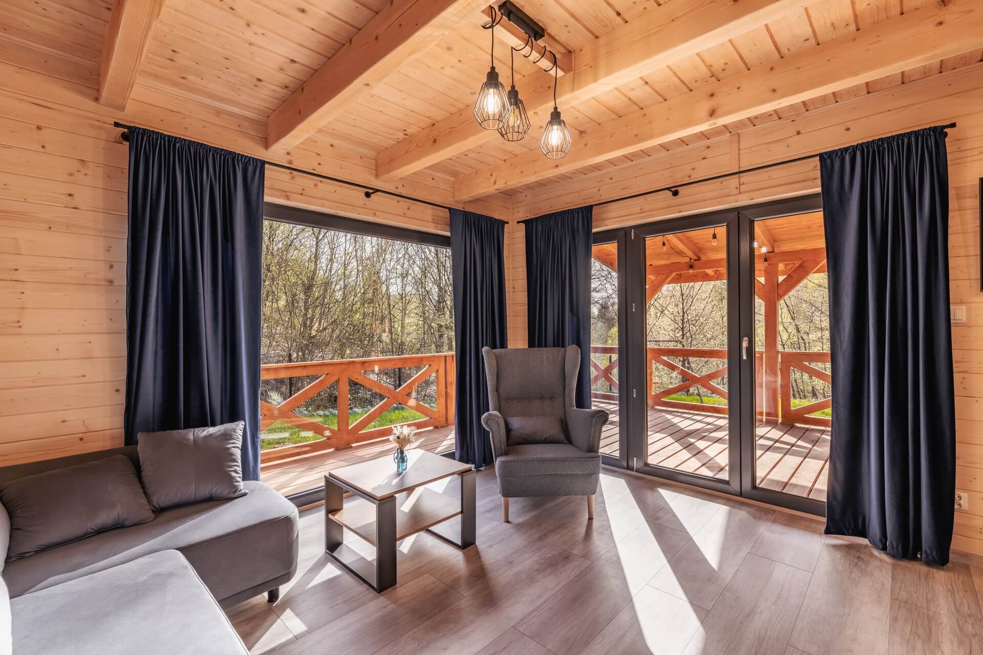 Domek 2 - widok na las oraz góry, położony pośrodku.