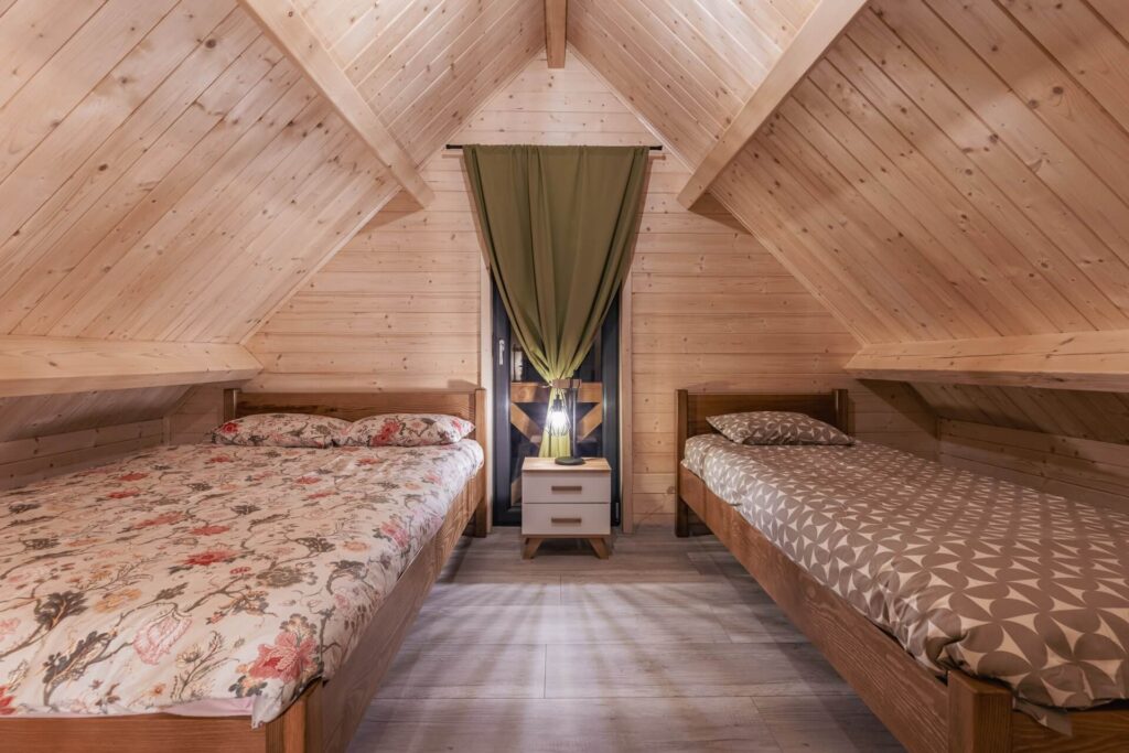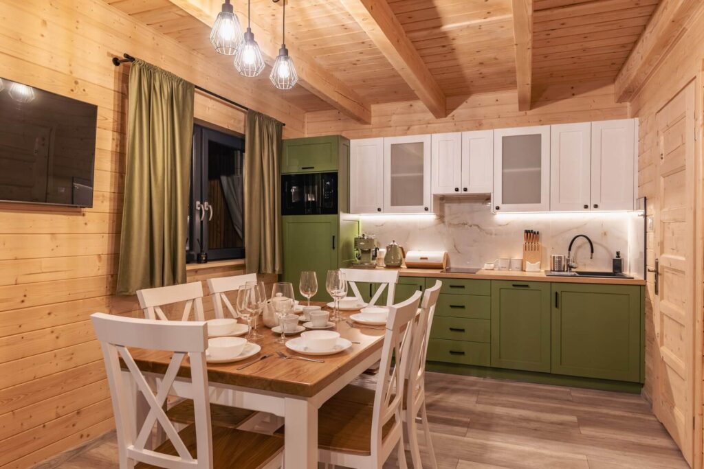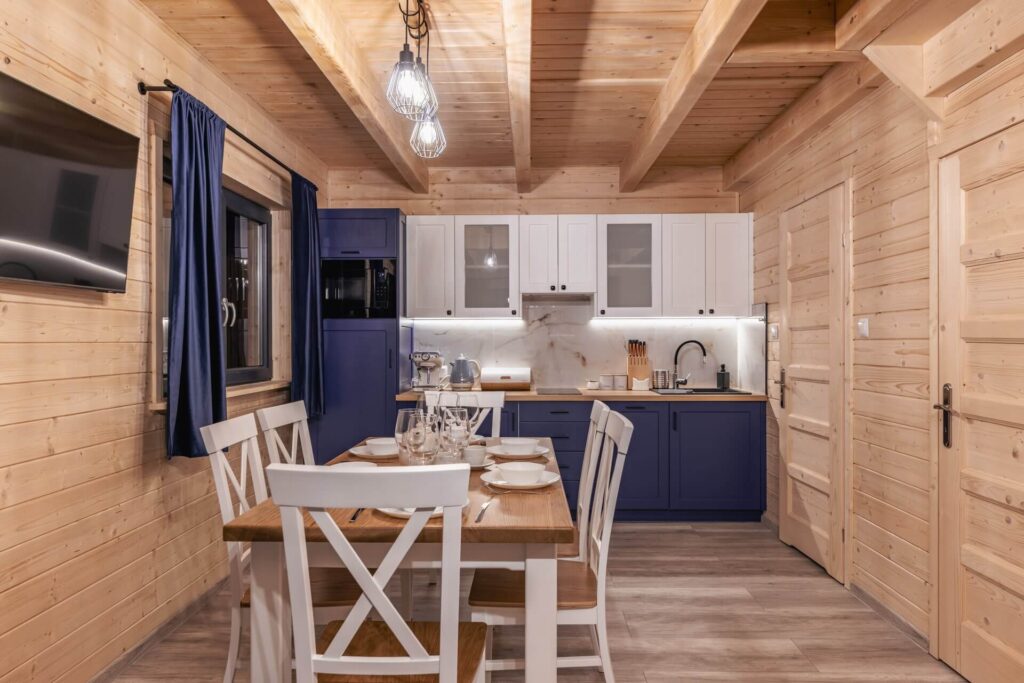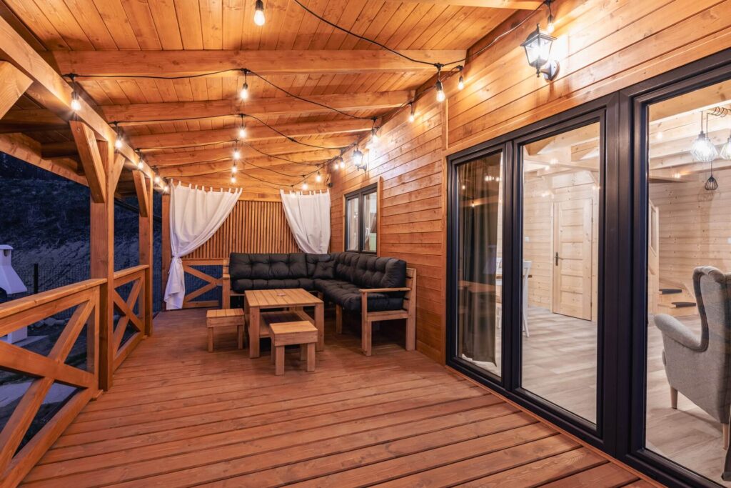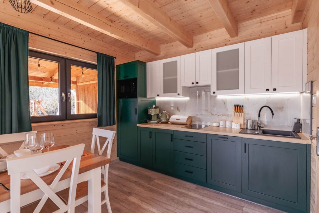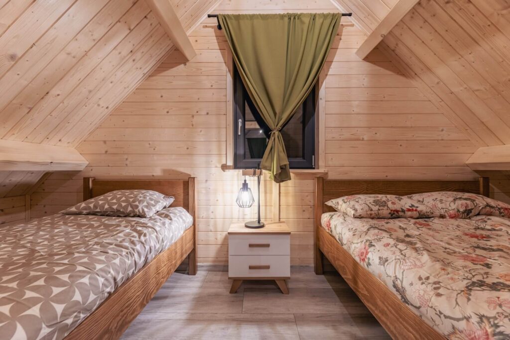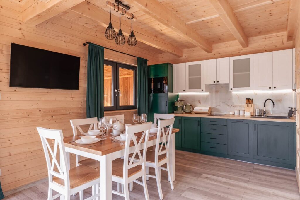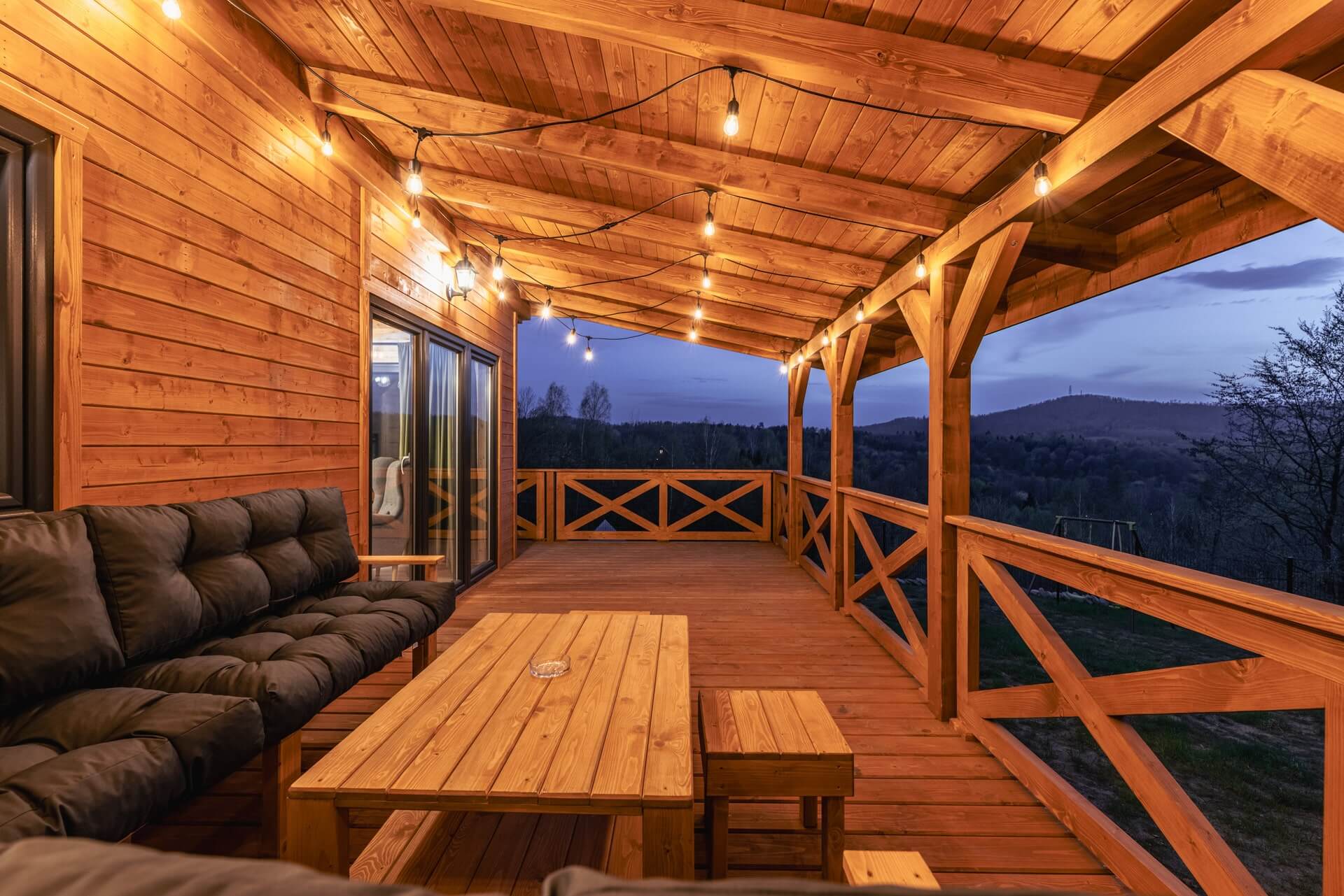 Domek 2 - widok na las oraz góry, położony pośrodku.