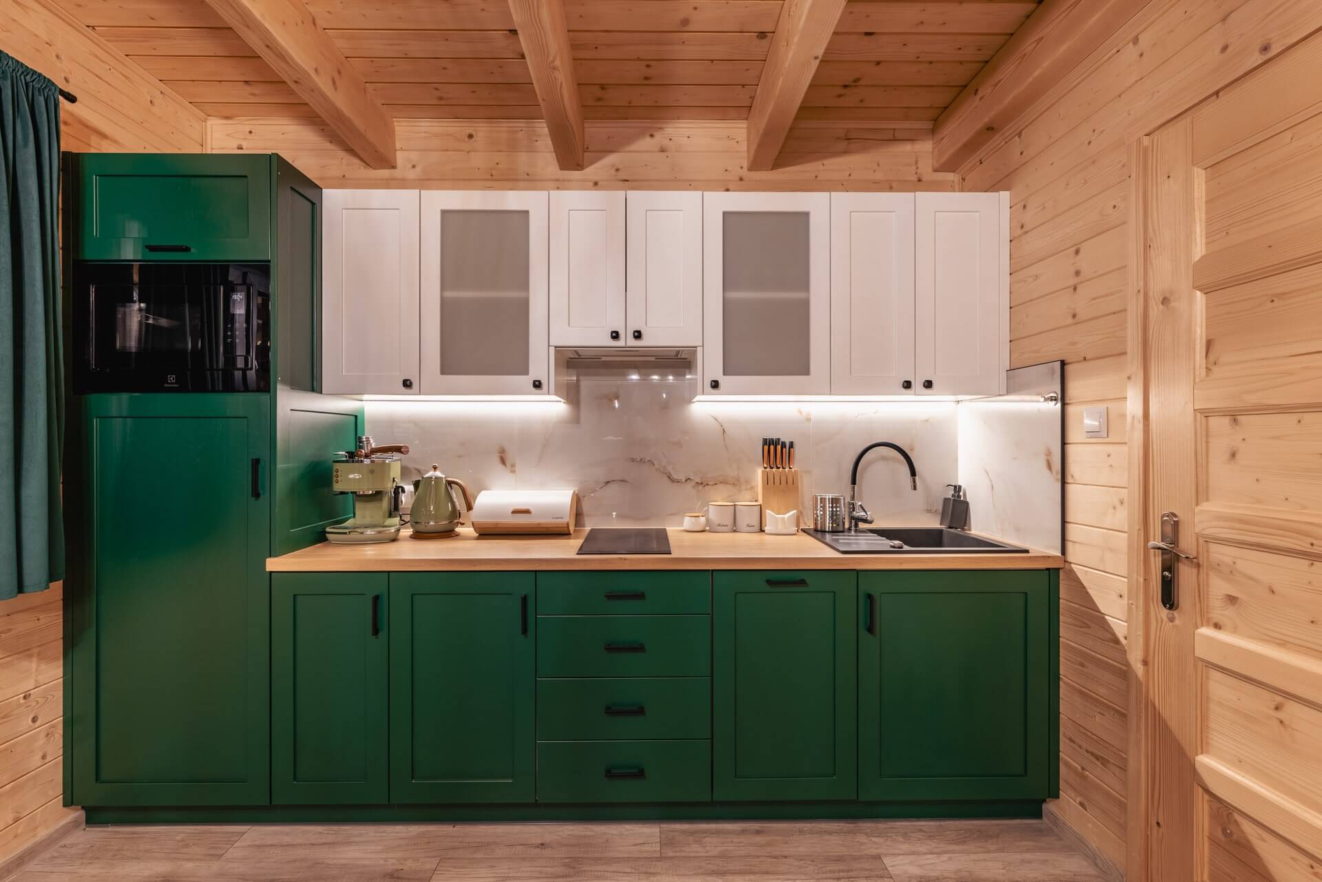 Domki są ułożone kaskadowo. Położenie od dołu: Domek 1 (widok-Las), Domek 2 (Widok-Las, Góry), Domek 3 (Widok-Las, Góry).