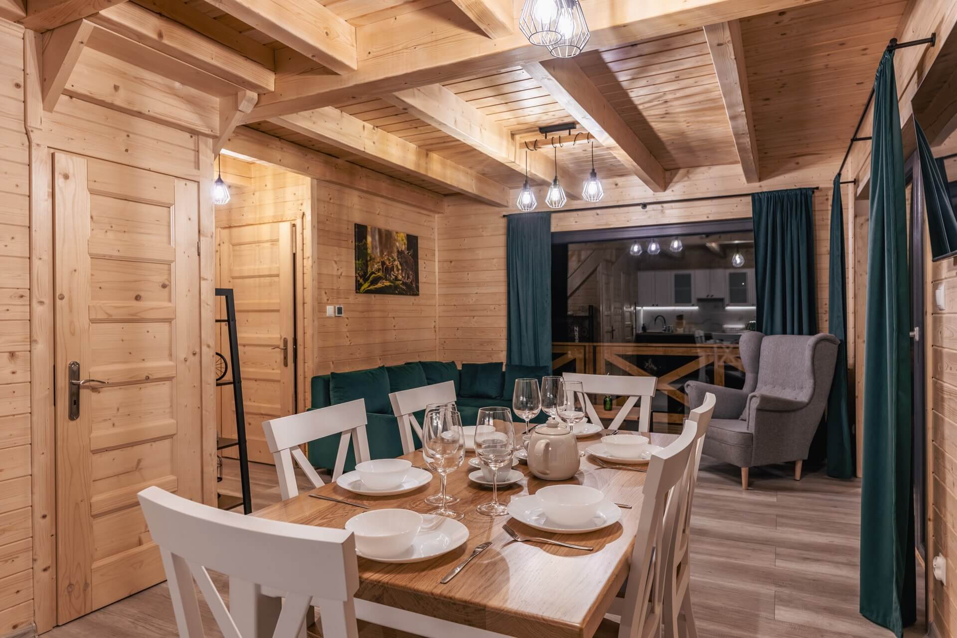 Do dyspozycji macie duży, zadaszony taras wyposażony w meble ogrodowe, idealny na poranną kawę czy wieczorny relaks. Każdy domek posiada murowany grill (nie zapewniamy węgla) oraz huśtawkę, na której możecie odpocząć po długich spacerach. Dla najmłodszych przygotowaliśmy trampolinę oraz huśtawkę dziecięcą. Zapewniamy także miejsca parkingowe, aby Wasze samochody mogły bezpiecznie odpocząć po podróży. Wszystkie domki mają osobne podwórka, co gwarantuje prywatność i spokój.